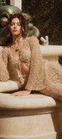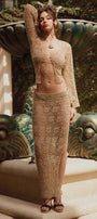 The set combines a flattering bodycon fit with a distinctive semi-heart neckline for a modern, elegant silhouette. Crafted from a wool-cotton blend, it offers both warmth and breathability, ensuring comfort without compromising style. This maxi set is ideal for occasions that call for refined sophistication with a contemporary edge.