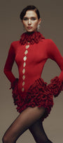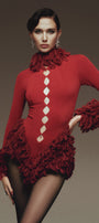 Elevate your wardrobe with this expert-crafted bodycon mini dress. The classic turtle neck and regular sleeves are beautifully contrasted by delicate ruffle embellishments. Premium cotton ensures comfort and fit. Ideal for cocktail parties, evenings out, or special occasions.