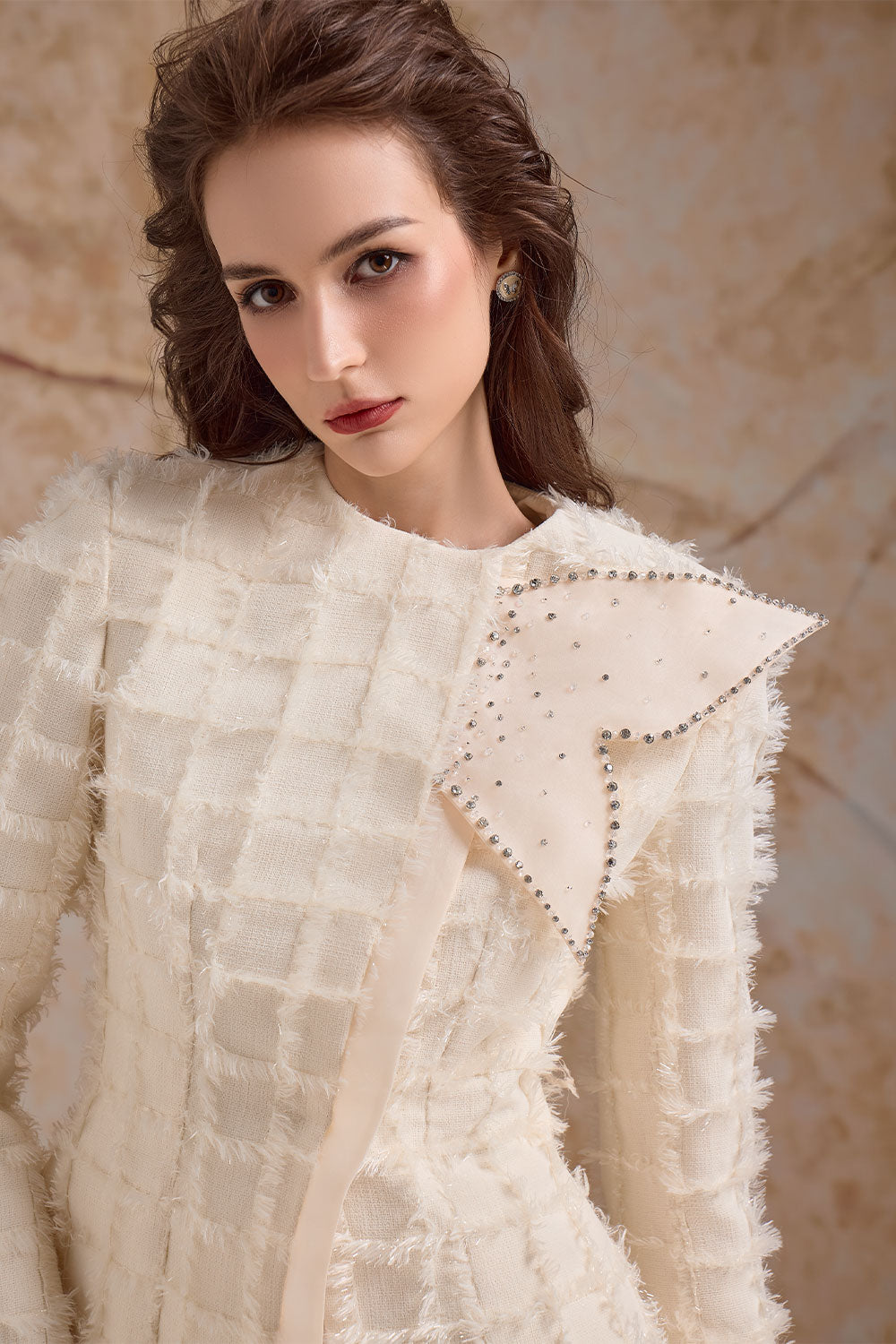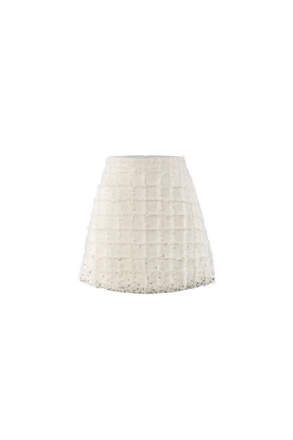 Material: Tweed, Taffeta, Organza (Top); Tweed (Skirt)