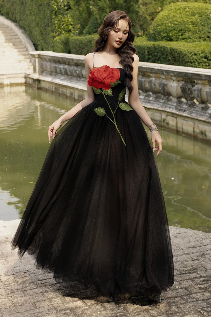 Special Features Embroidered rose appliqué, Gathered skirt, Padded bust