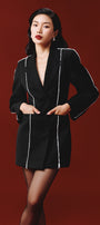 Elevate your style with this expertly tailored mini sheath dress, featuring a sharp V-neck and classic regular sleeves for a sleek silhouette. Ideal for cocktail parties, date nights, and elegant gatherings.
