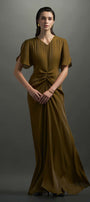 Expertly crafted from luxurious silk, this sheath maxi dress features a flattering V-neckline, soft butterfly sleeves, and elegant gathering details. Ideal for evening events, weddings, or upscale parties, it offers timeless sophistication for any special occasion.