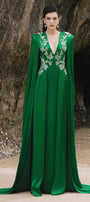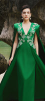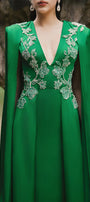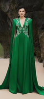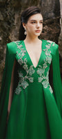 Jimena A-line Cape Sleeved Silk Extra Long Length Dress
