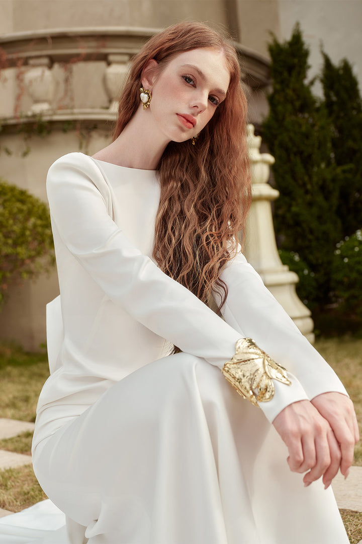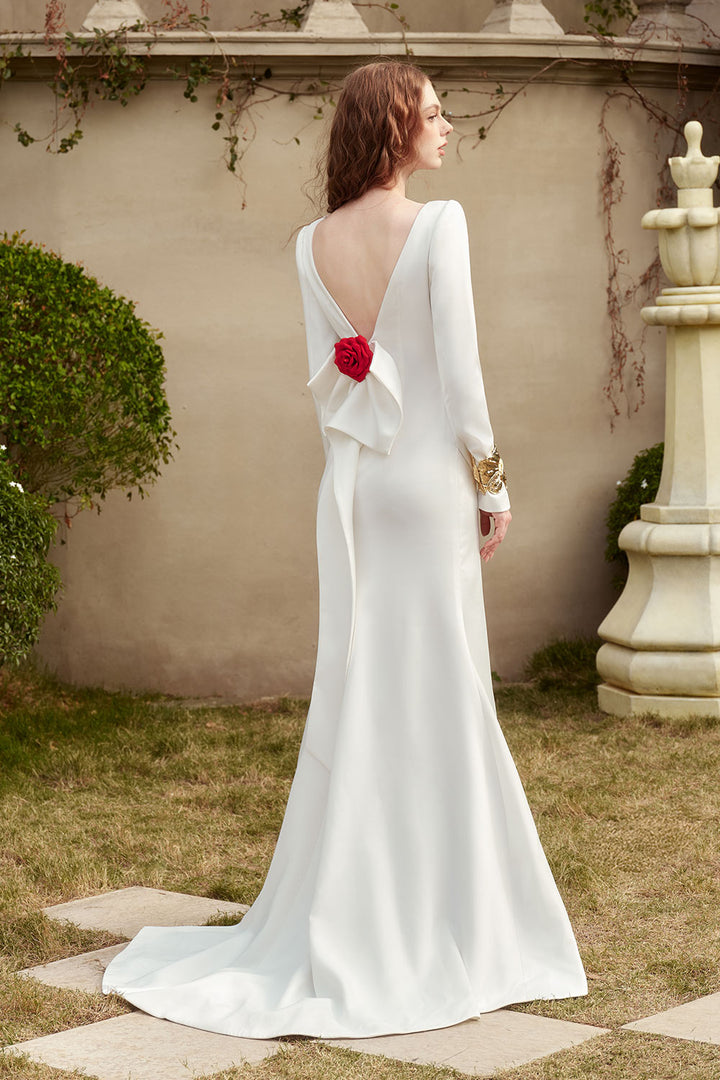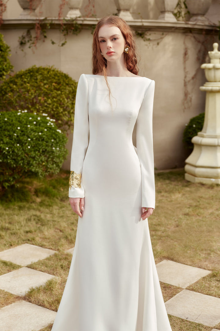 Expertly crafted with a sleek trumpet silhouette and an elegant open back design, the dress is the epitome of sophistication. Made from luxurious silk, this dress will elevate any formal occasion with its timeless style and effortless grace.