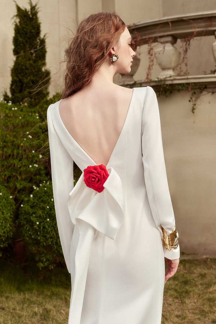| Special Features | Attached red floral with ribbon at the back, Square shoulder, Waist dart |