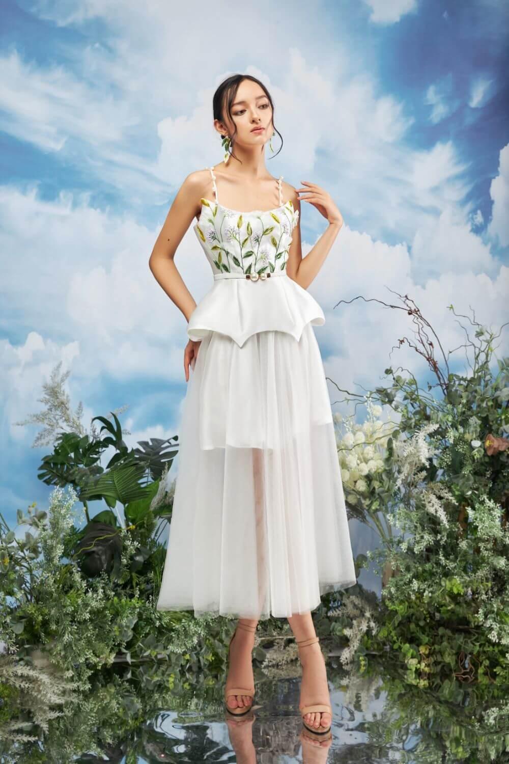 - Material: Top: Taffeta, Skirt: Mesh Sheer