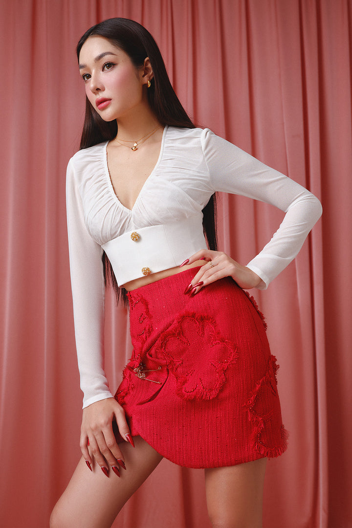 Brilliant Blossom A-line V-Neck Tweed Mini Set