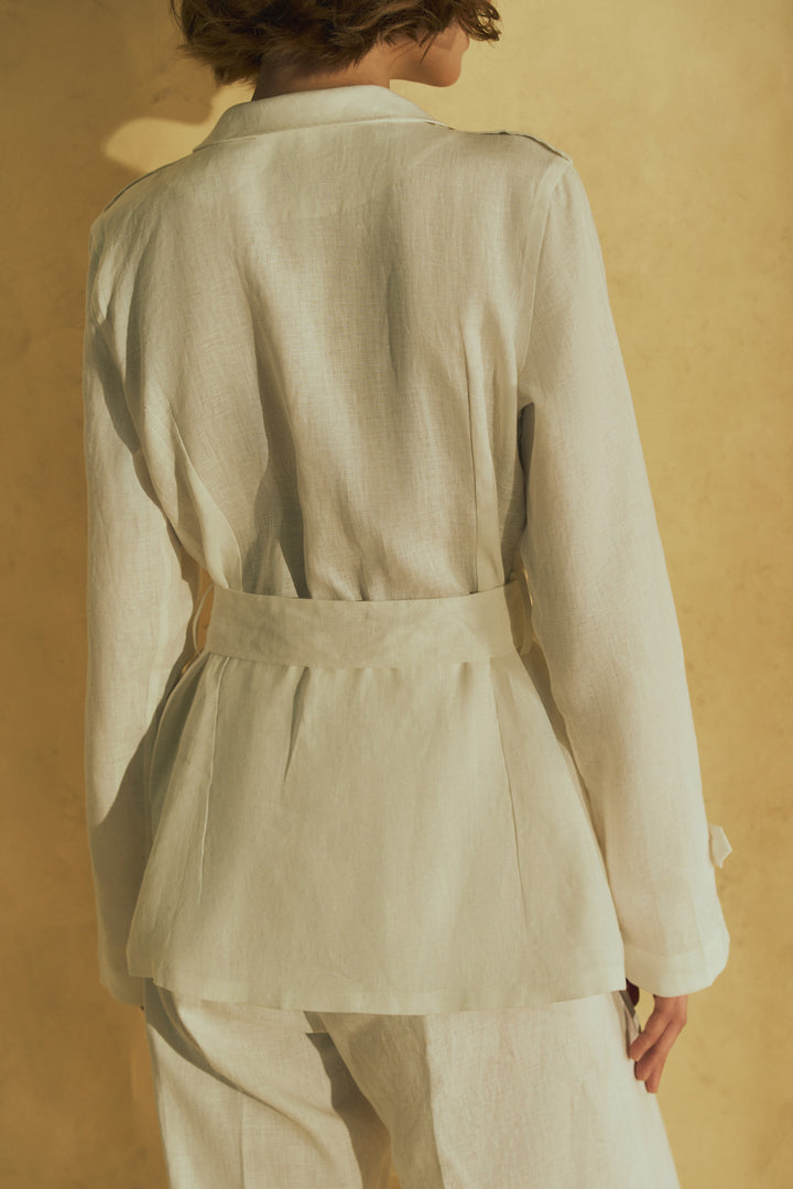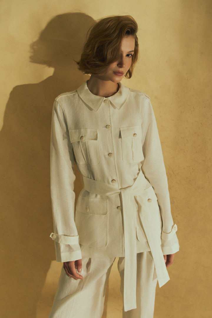 This shirt combines timeless style with practical design. Featuring four flap pockets secured with buttons, it offers convenient storage while enhancing the shirt’s structured look. The cuff straps provide an adjustable fit and add a refined touch to the sleeves. Crafted from breathable linen, this shirt ensures comfort and durability in warmer conditions, making it a versatile staple for both casual and smart-casual wardrobes.