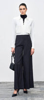Elevate your wardrobe with our pants. Crafted from premium polycotton, these pants offer a flattering flare silhouette and a unique ribbed texture. Perfect for any occasion, these pants exude sophistication and exclusivity.