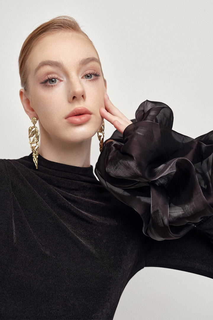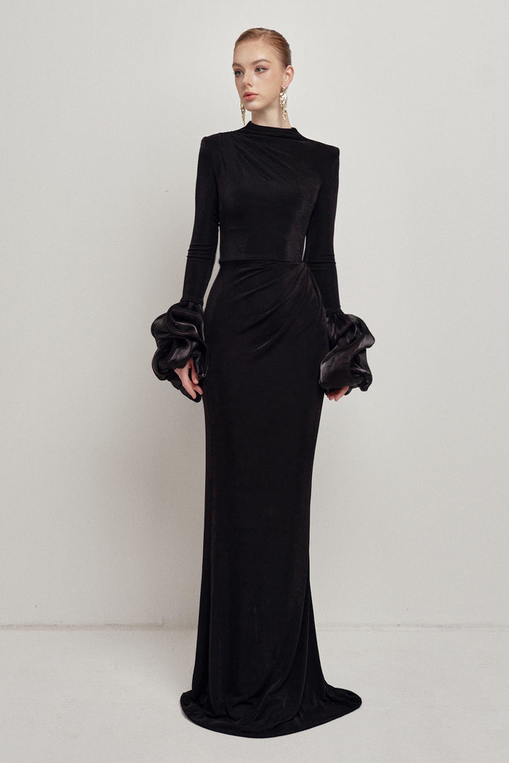 | Special Features | Dramatic ruched sleeves, Draped on the side hip and shoulder, Square shoulder |
