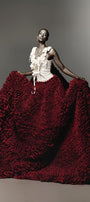Crafted from luxurious chiffon and adorned with delicate flower appliques, this floor length skirt exudes elegance and sophistication. Perfect for special occasions, the intricate details and flowing silhouette are sure to command attention.