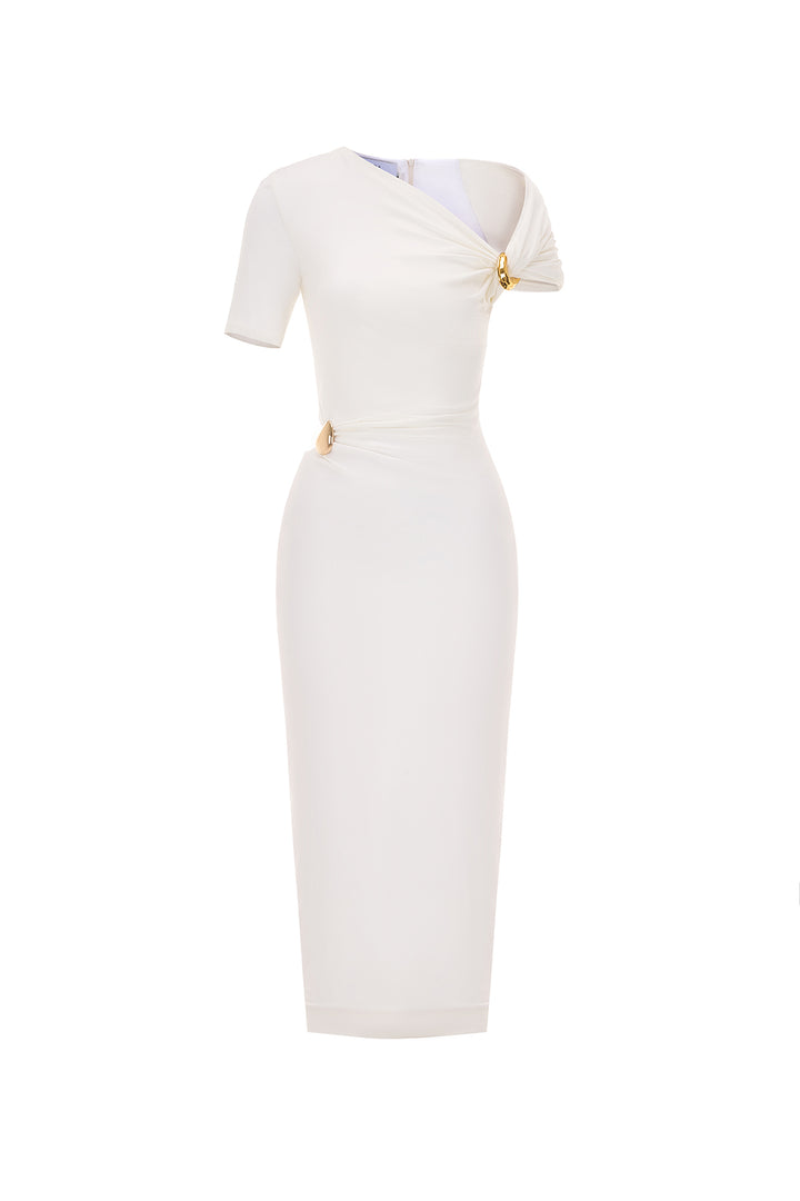 Jade Sheath Asymmetric Neck Viscose Midi Dress - MEAN BLVD