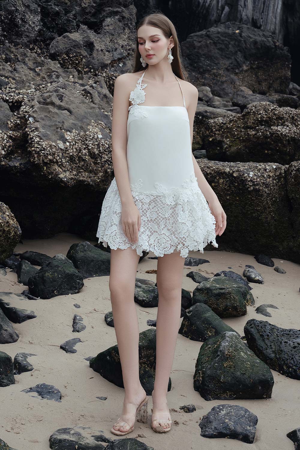 Jeremy Drop Waist Halter Neck Polycotton Mini Dress