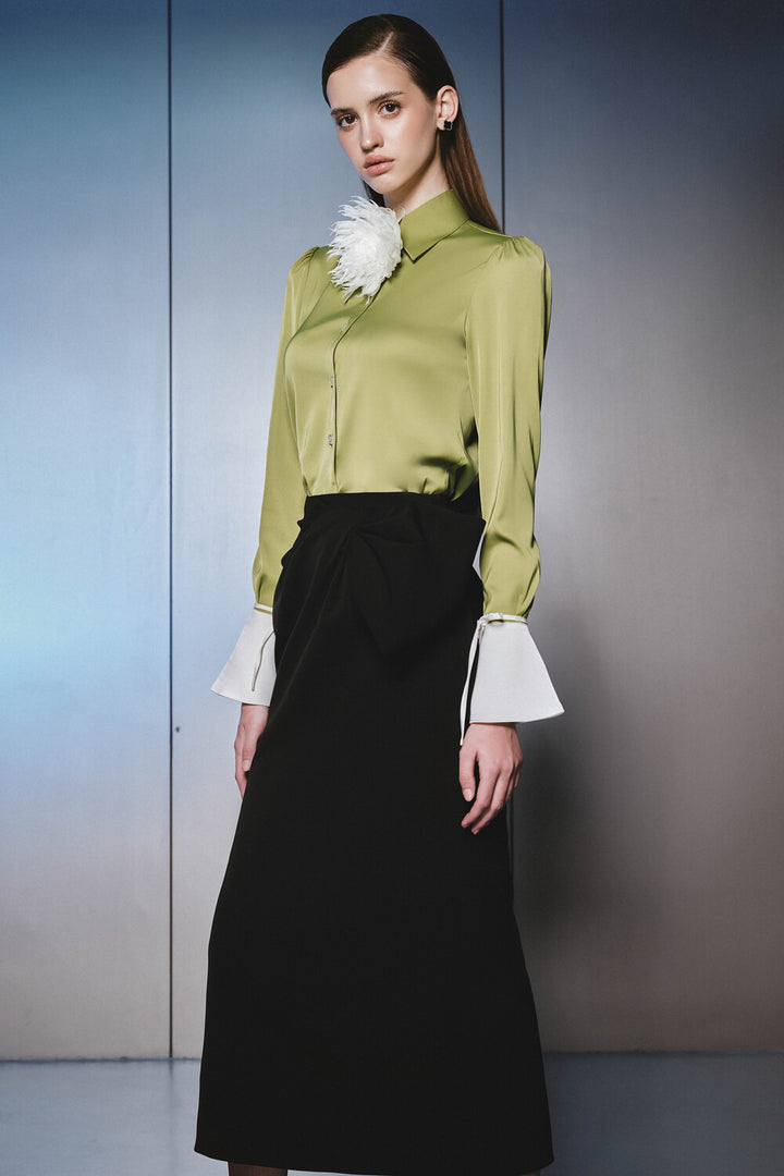 Lonleve Straight Poet Sleeved Silk Blend Shirt
