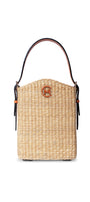 Rectangular bucket-style, Secured with gold-toned hardware, Attached leather patch with logo on the front