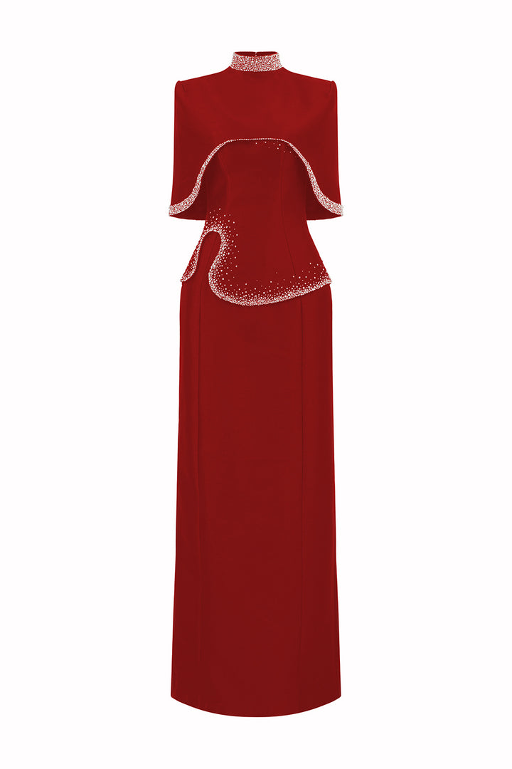 | Special Features | Curved hemline, Crystal-embellished at hemline and neckline, Square shoulder |