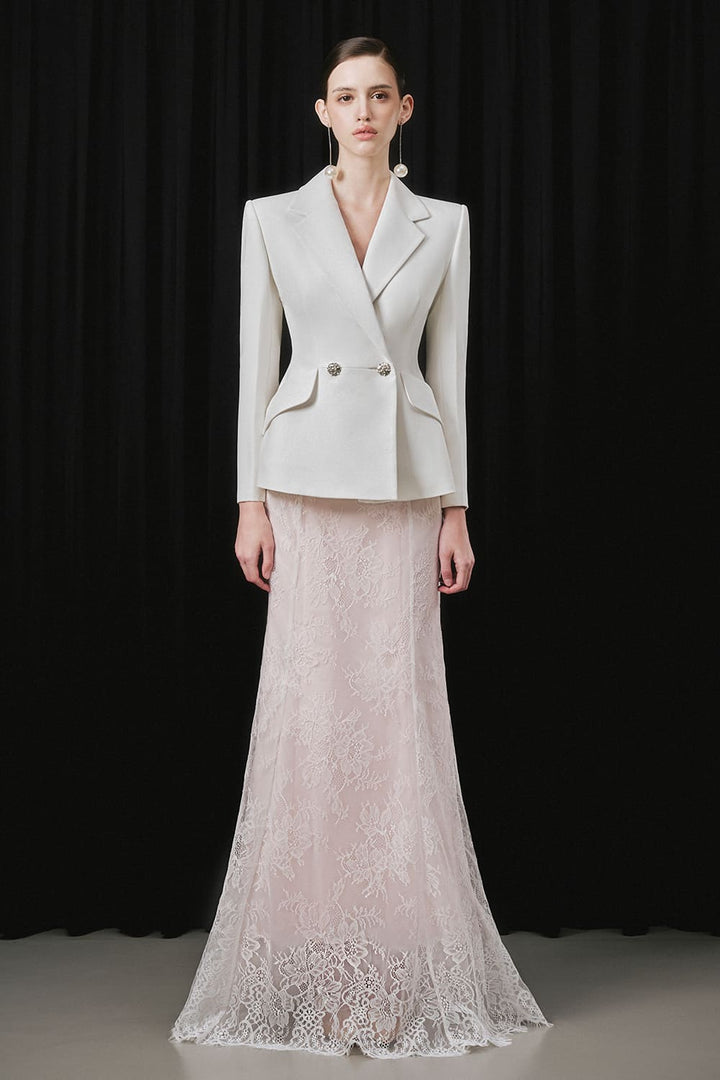 Rebper Mermaid Ribbed Lace Floor Length Skirt