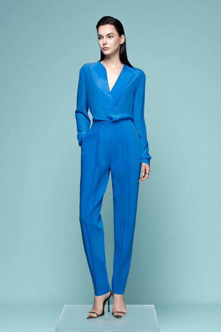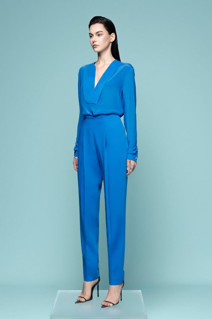 Elevate your style with the pants—where bold elegance meets luxurious comfort. Crafted from smooth silk crepe, these pants drape effortlessly with a sleek straight taper that commands attention. Designed for those who dare to stand out, they offer a striking silhouette perfect for day-to-night allure. Step confidently into a look that challenges the ordinary and celebrates fearless fashion.