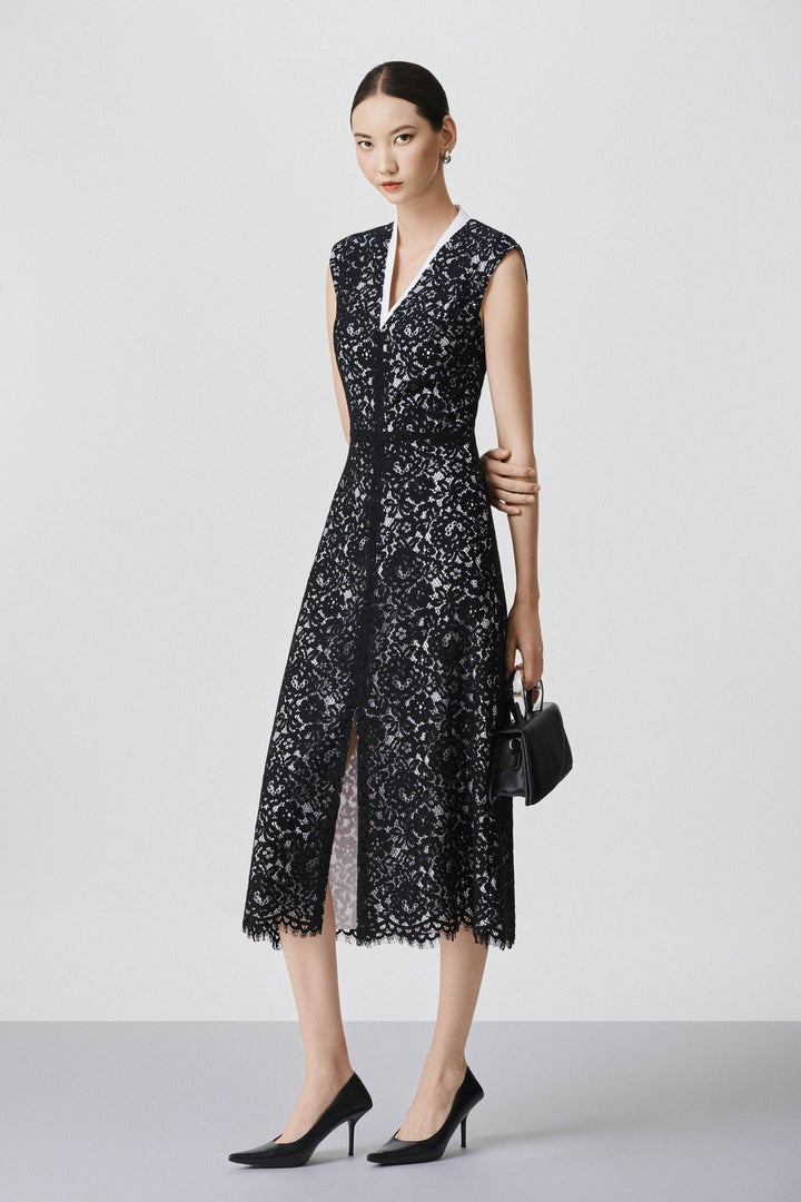 Selene A-line V-Neck Cotton Lace Midi Dress