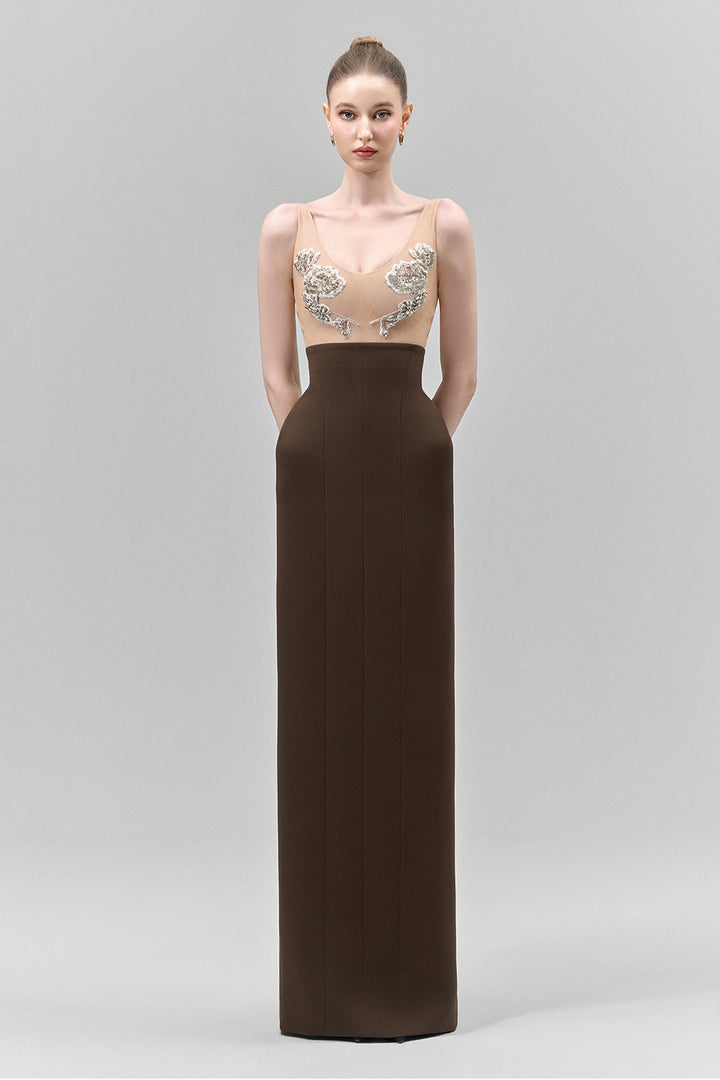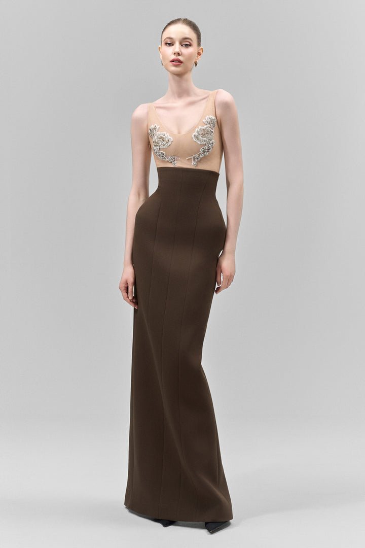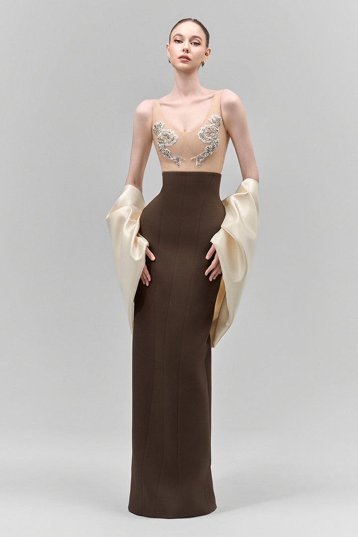 The bodysuit combines a flattering scoop neckline with delicate chest embroidery, offering a refined yet sensual aesthetic. Crafted from sheer mesh fabric, it contours the body seamlessly while the intricate embroidery adds a sophisticated focal point. Perfect for layering or wearing alone, this bodysuit balances elegance with modern edge for versatile styling.