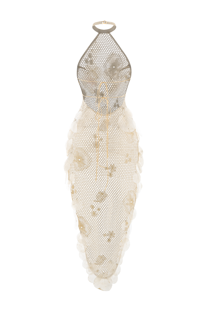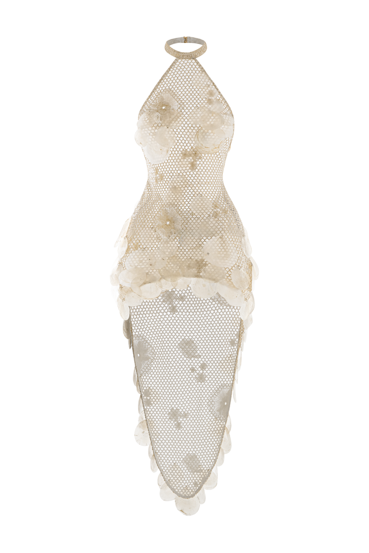 The dress offers a sophisticated silhouette that contours the body with precision. Its halter neck design highlights the shoulders while the high-low hem adds dynamic movement and visual interest. Crafted from breathable mesh fabric, this dress balances allure and comfort, making it an expert choice for elegant evening events or stylish occasions.