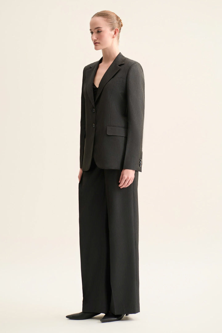 This blazer features a sleek and sophisticated straight notch lapel design. Expertly crafted with a wool blend, this blazer offers a comfortable and stylish fit. Perfect for any formal or professional occasion, this blazer is a versatile addition to any wardrobe.