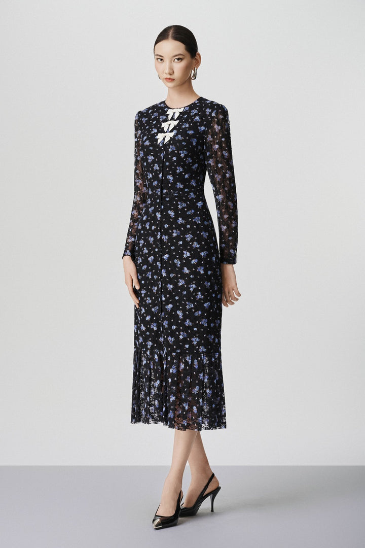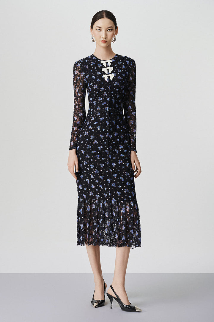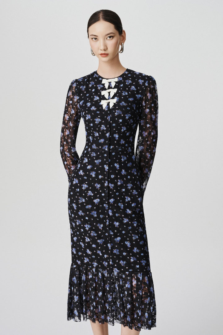 | Special Features | Drop waist with pleated skirt, Crease on the front, Sheer lace sleeves, White bow row on the chest |