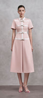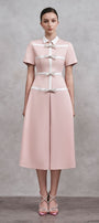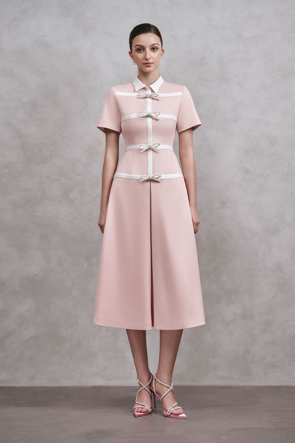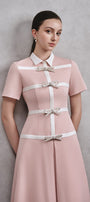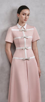 This dress offers a modern and elegant look in a charming shade of pink. The collared neck adds a touch of sophistication, while the bow detail adds a playful touch. Made with high-quality cotton, this dress is both stylish and comfortable.