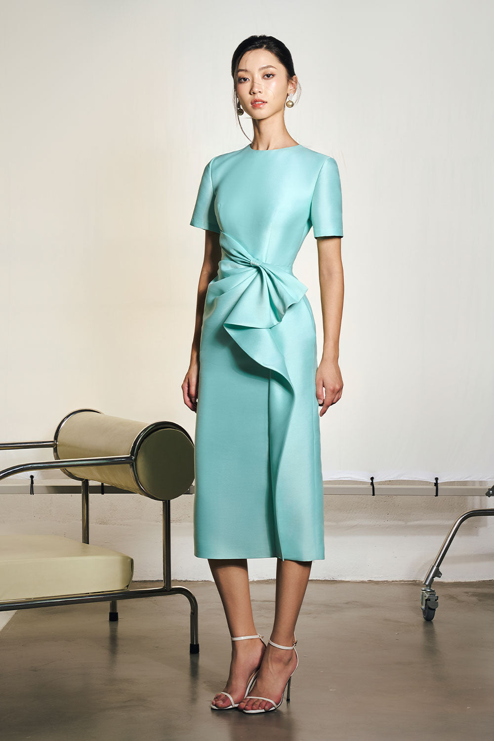 Draped detail at the waist creating a flowing