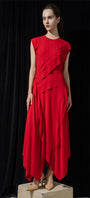 Expertly crafted from high-quality silk, this dress boasts a stunning layered and ruffled design. The luxurious fabric offers a soft, comfortable feel, while the unique details add a touch of elegance to this versatile dress. Perfect for any occasion, this dress is sure to make a statement.