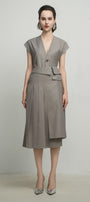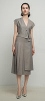 Giavanna Asymmetric Side Pleated Polycotton Calf Length Skirt