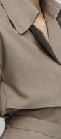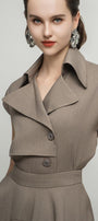 Special Features: V-neckline with collared lapels, Large notched lapel, Asymmetrical buttons