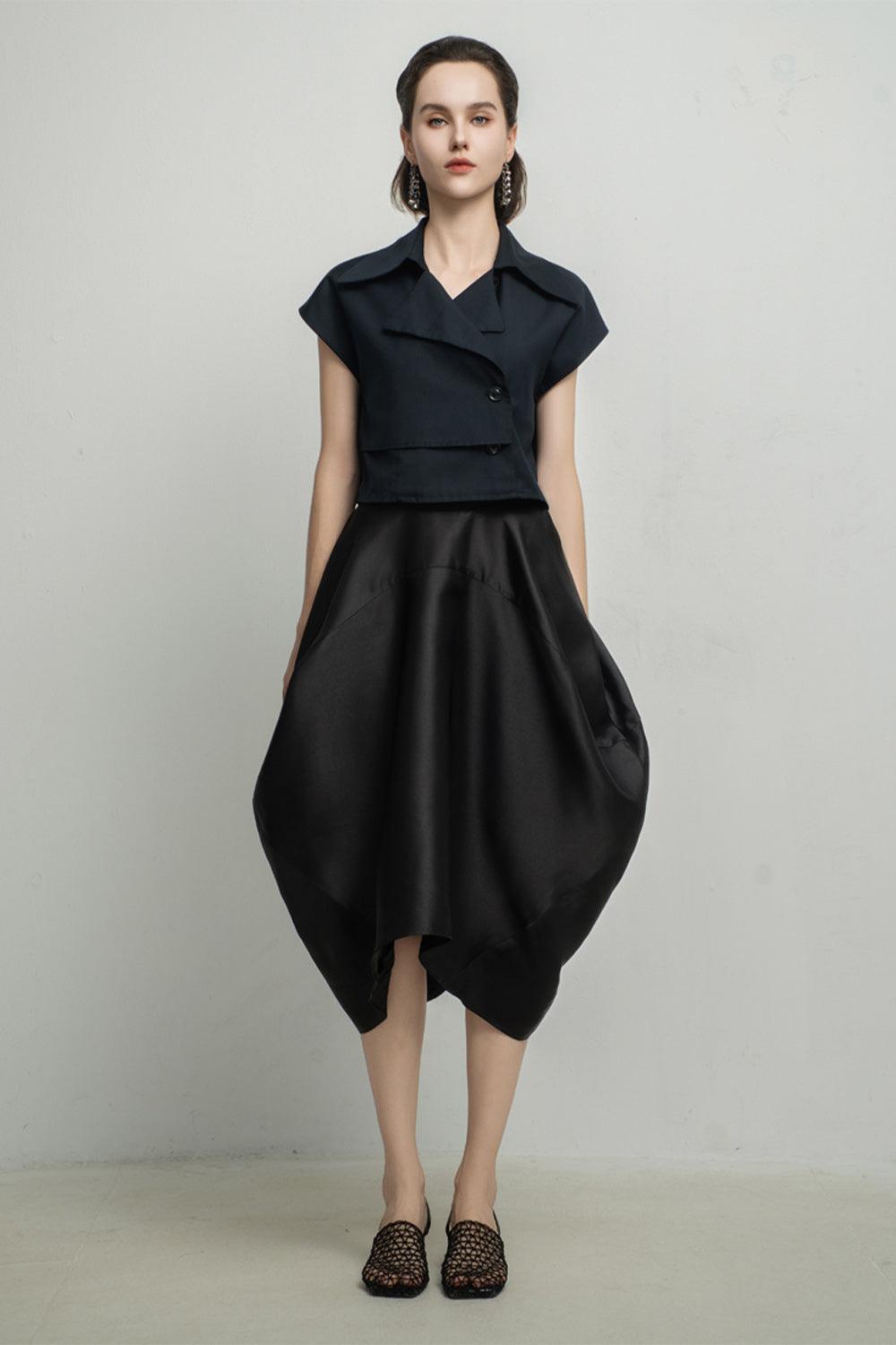 Expertly crafted from luxurious silk, this skirt adds a touch of elegance to any ensemble. The tulip draped design provides a flattering silhouette, while the calf length adds a modern and sophisticated feel. Perfect for any occasion, this skirt is a must-have for every fashion-forward woman.