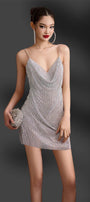 Glimering Gala Sheath Stone Mesh Mini Dress