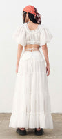 The skirt offers a flowing silhouette crafted from lightweight chiffon, ensuring graceful movement and breathability. Its A-line cut flatters various body types while providing comfort and elegance. Ideal for layering or standalone wear, this skirt combines bohemian charm with refined tailoring for versatile styling options.