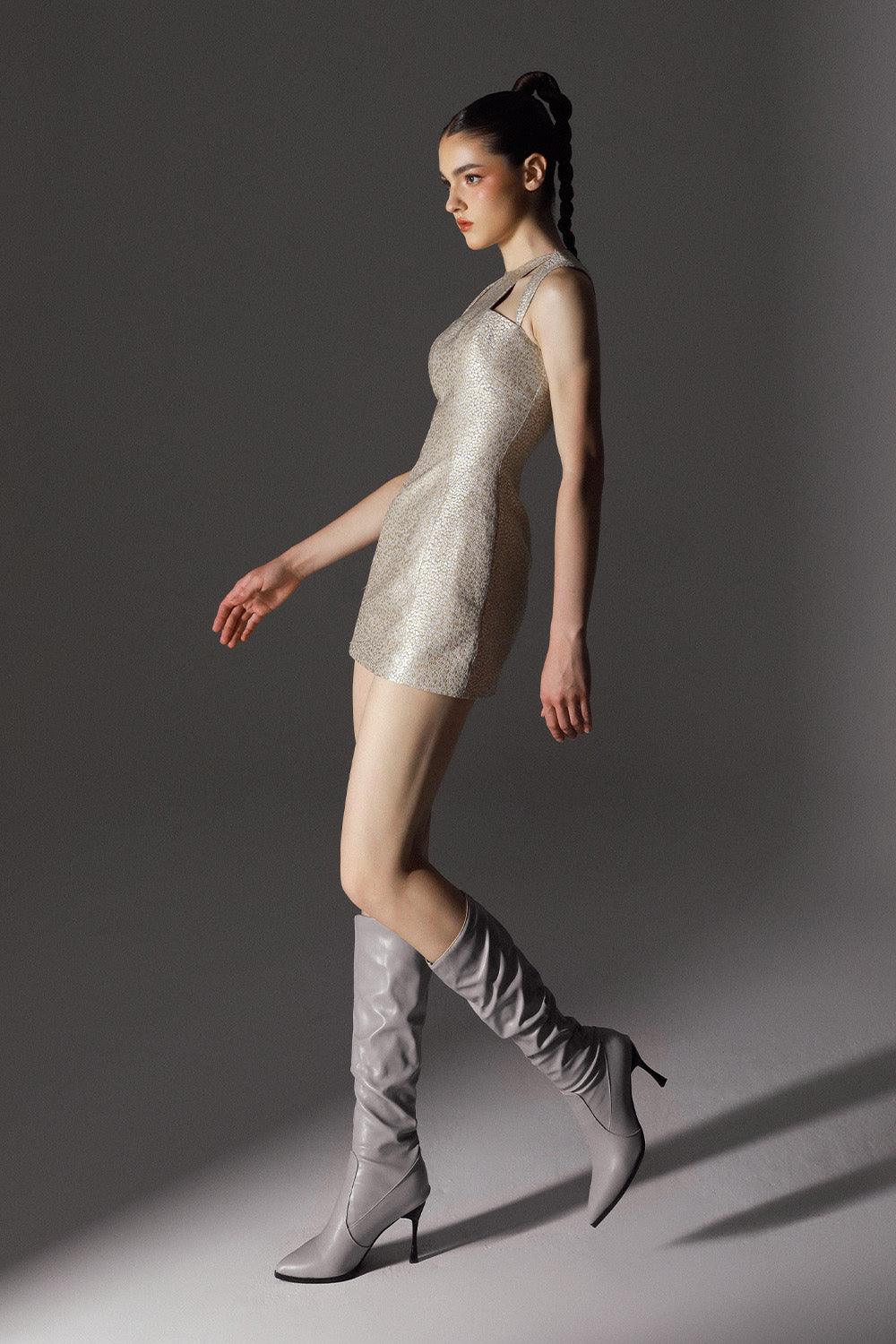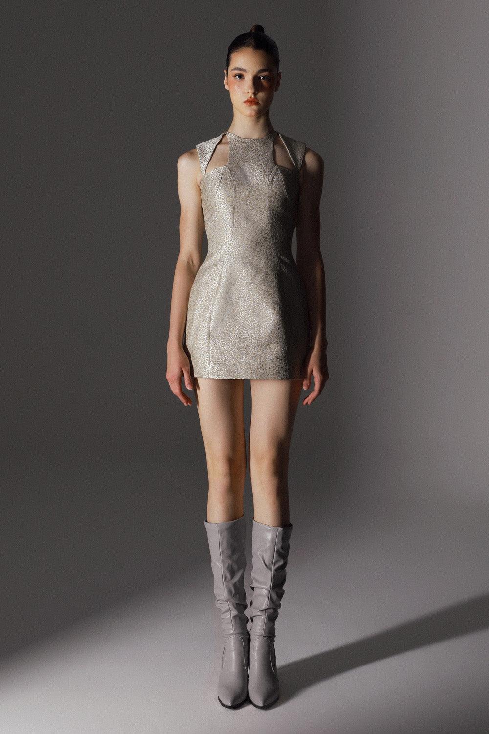 Tweedy Hourglass Round Neck Wool Cotton Mini Dress