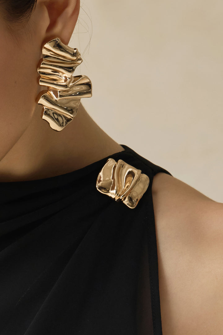 Expertly crafted from premium twill, this asymmetric top features a refined round neck and elegant cape sleeves for a standout silhouette. Ideal for professional settings, sophisticated gatherings, or elevated casual occasions.