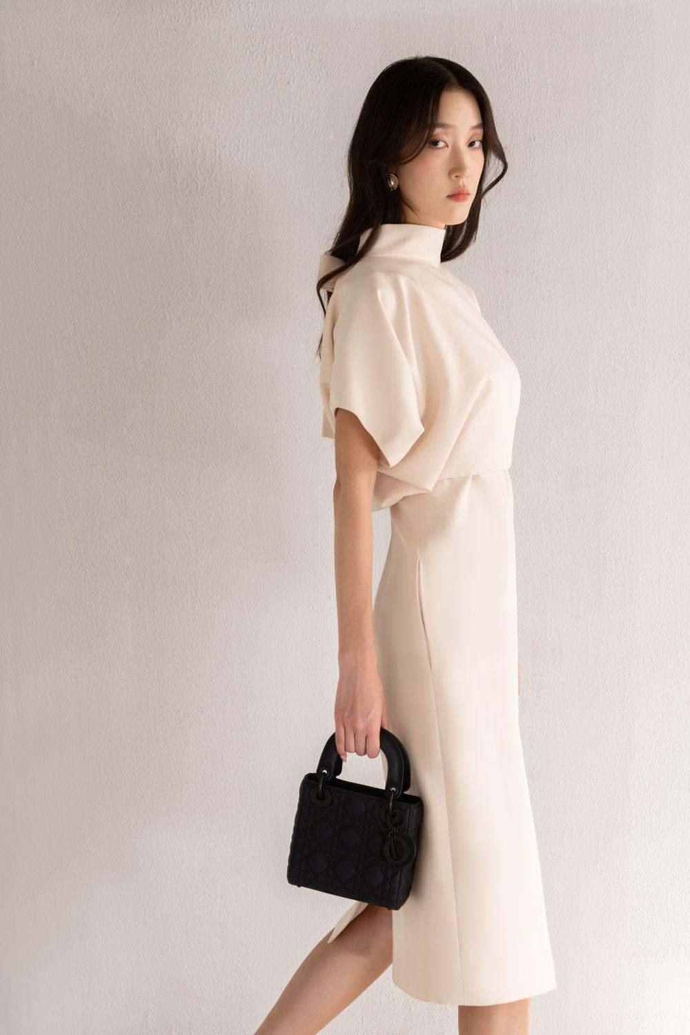 Special Features: Sleeveless dress mixed with separated outer top, Cut-out on the back of outer top with bow tie