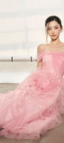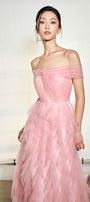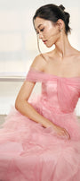 Expertly crafted, this dress is a must-have for any fashion-forward woman. Made from high-quality organza, this dress features a flattering A-line silhouette and a chic off-shoulder design. Perfect for any occasion, it offers both style and comfort for a timeless and elegant look.