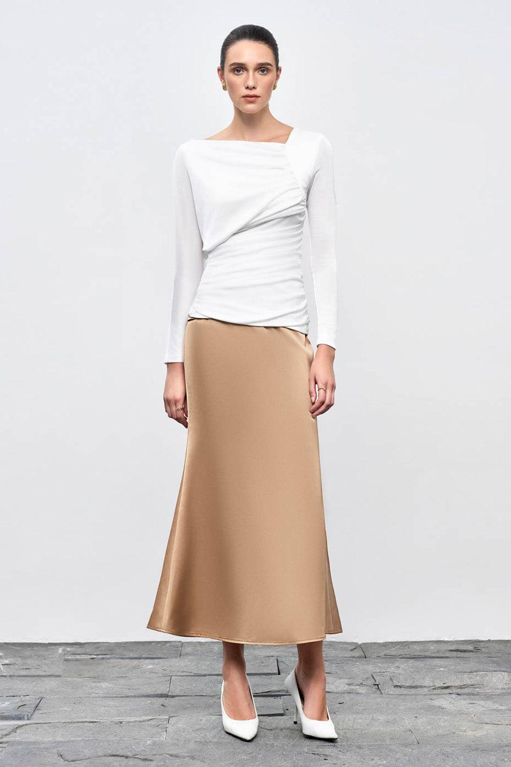 Indulge in luxury with our skirt. The trumpet high waist design accentuates your curves while the ankle length silhouette adds an air of sophistication. Made with premium silk, this skirt will elevate any outfit and make you feel like a work of art.