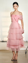 Lisa Layered Off-Shoulder Organza Midi Dress