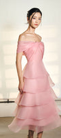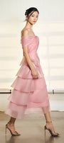 Expertly designed for the modern woman, this dress creates a flattering silhouette. The intricate layers of organza add depth and texture, while the off-shoulder design exudes elegance. Perfect for any special occasion, this dress is a must-have for the fashion-forward woman.