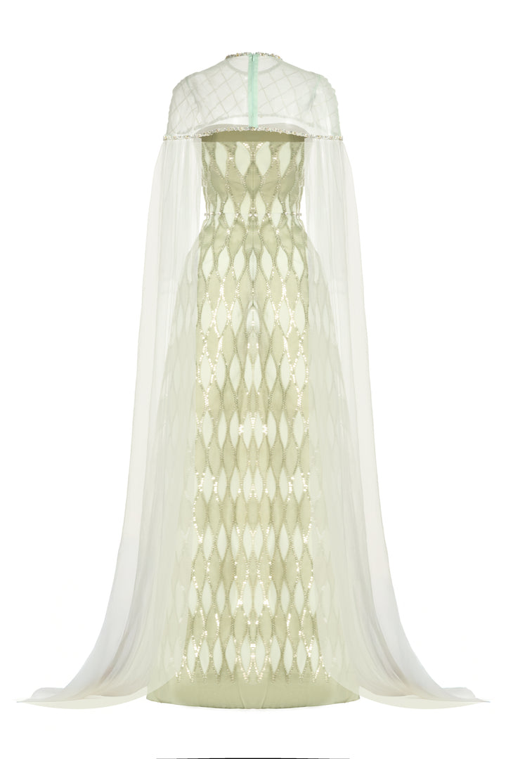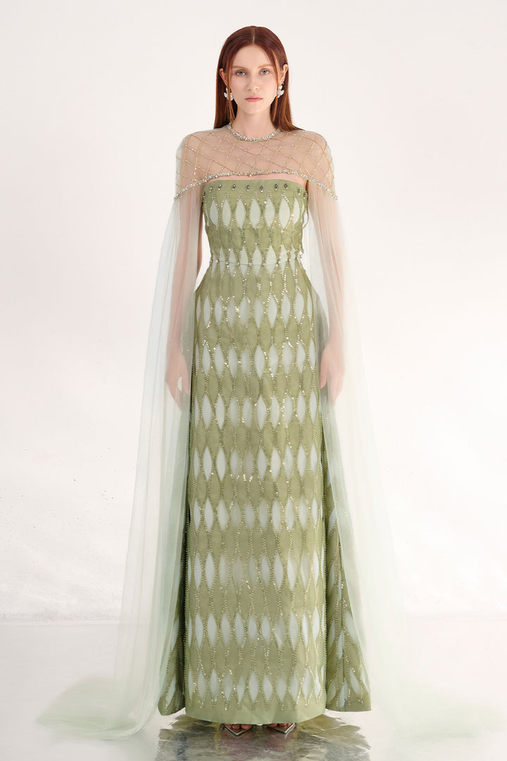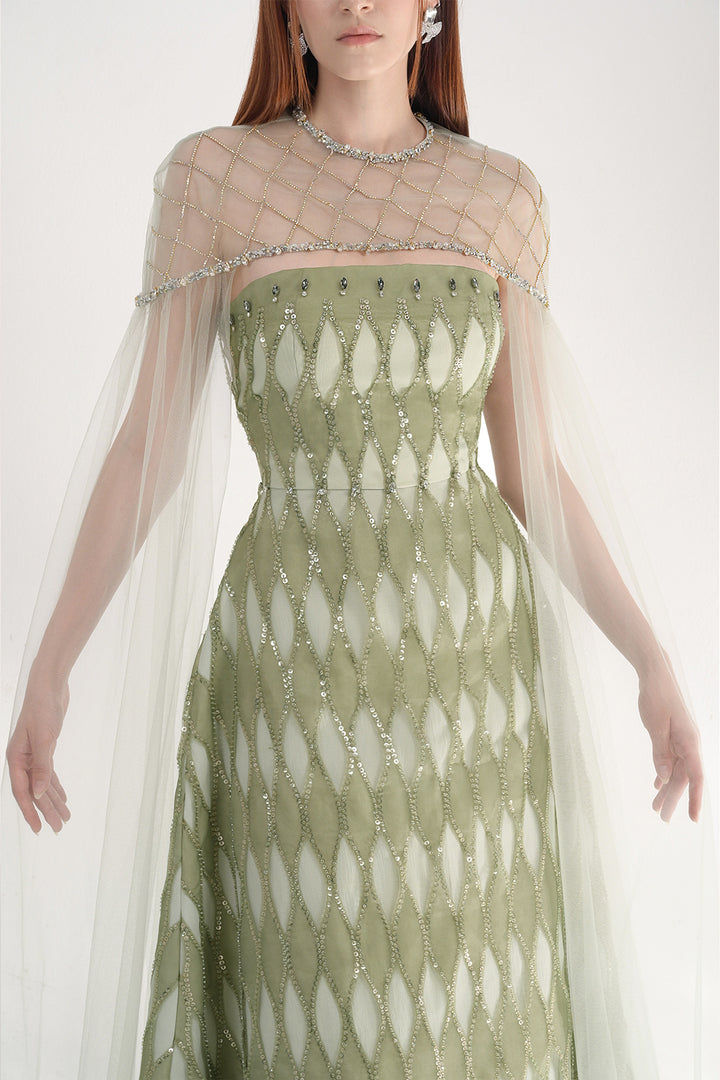 Monica A-line Cape Shoulder Mesh Maxi Set