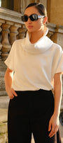 This high-neck silk blend top boasts a sophisticated Parisian style, perfect for slightly cold season. With its elegant high neck and short sleeves, it provides both coverage and comfort. Show off your timeless and refined sense of fashion with this chic top.