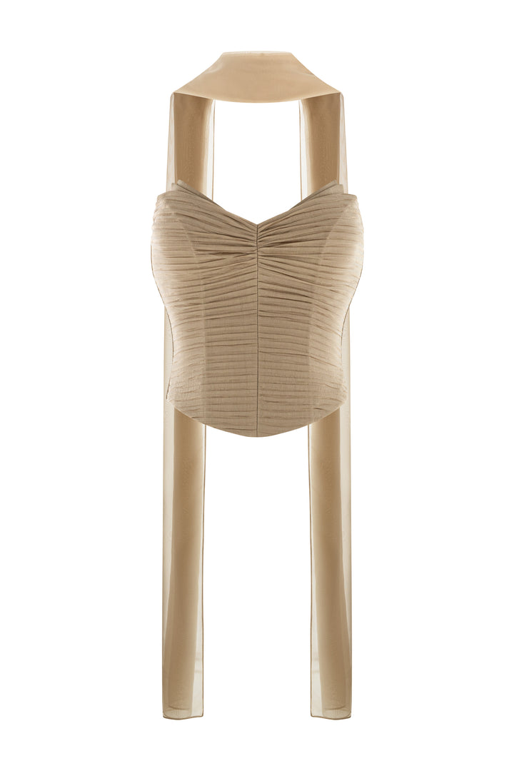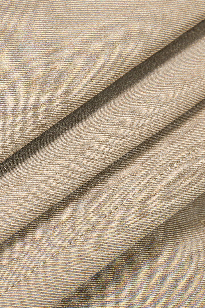 This elegant set features a ruched bustier top with a flattering sweetheart neckline, paired with high-waist trousers for a sleek, elongated silhouette. The khaki floor-length design offers a sophisticated and versatile look, perfect for both formal occasions and stylish everyday wear. Crafted to combine comfort with refined style, this ensemble enhances your figure while maintaining a polished appearance.