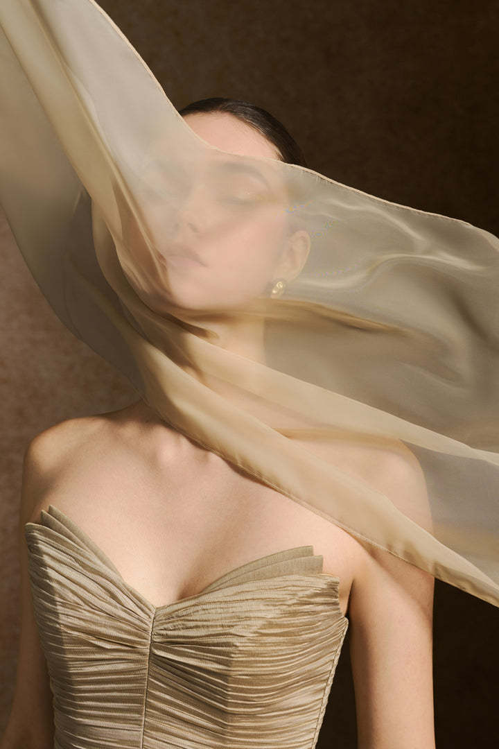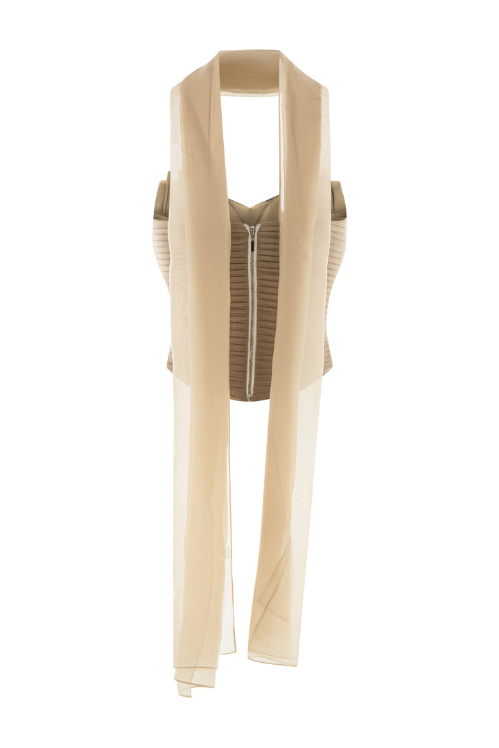 Material: Silk Organza (Top), Khaki (Pants), Chiffon (Scarf)
