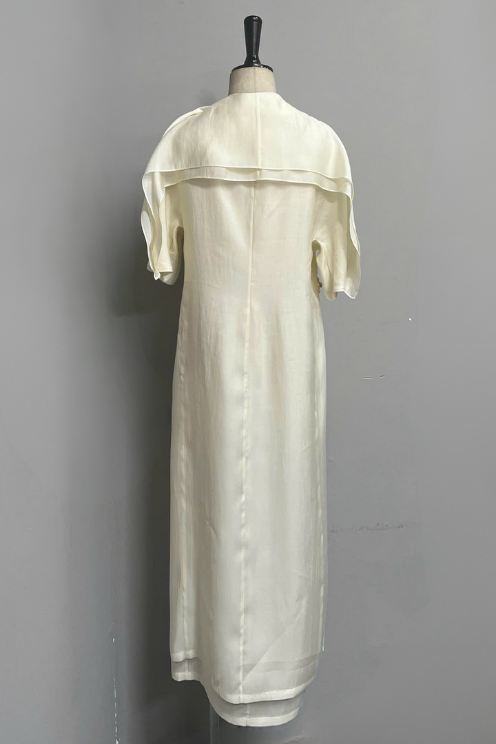 Phu Dung Layered Ruffle Collar Silk Calf Length Ao Dai