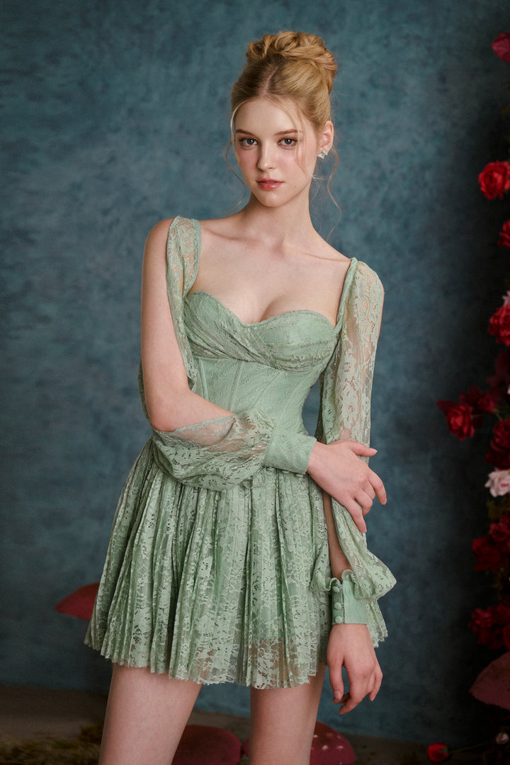 Tinkerbell A-line Split Sleeved Lace Mini Dress