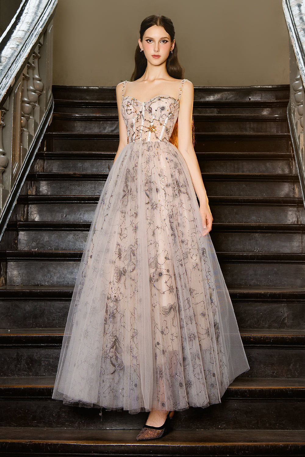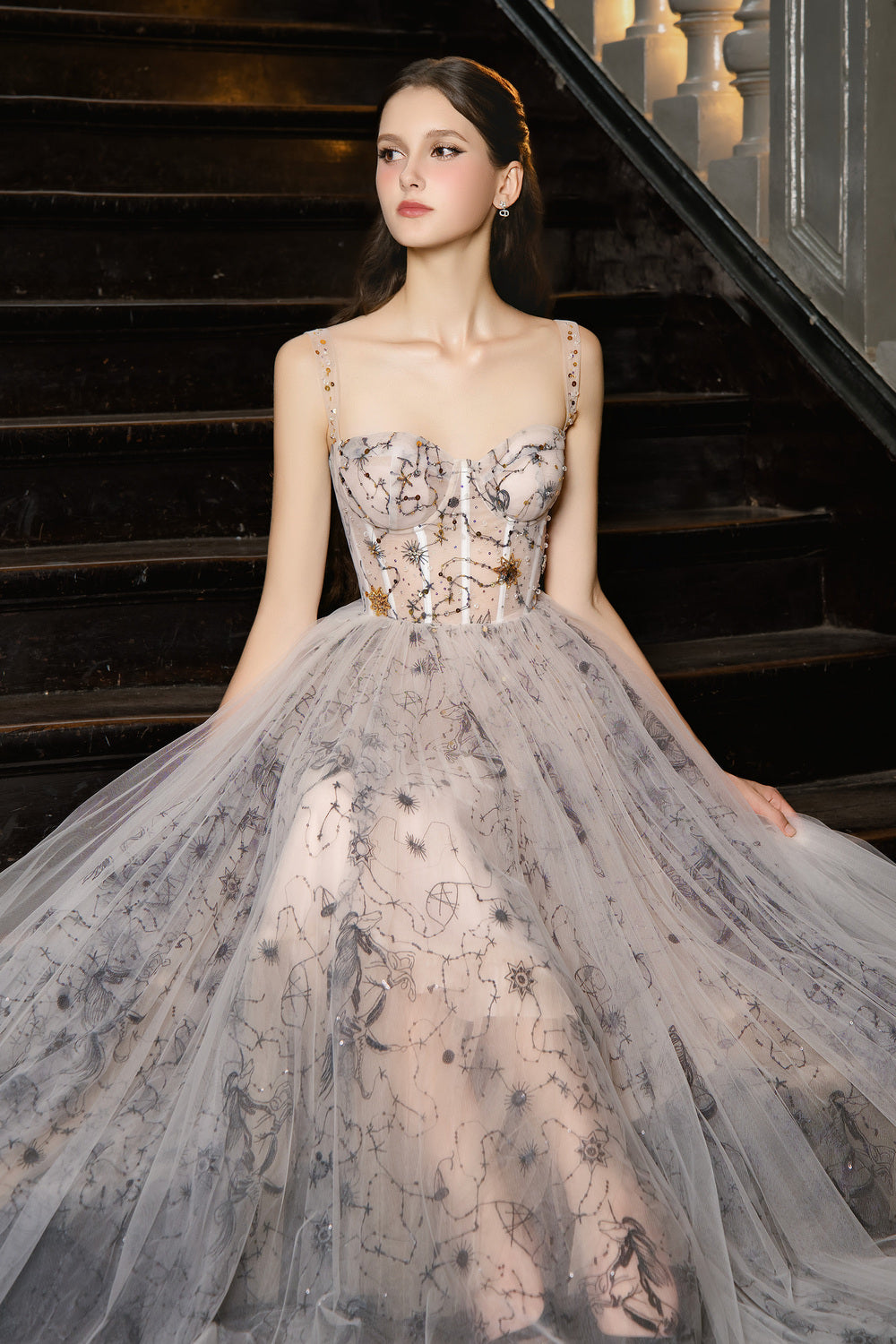 Special Features: Galaxy-inspired embroidered , Beads straps, Corset waist