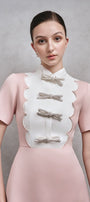 Scalloped symmetric hem collar, Attacehed bows on upper body